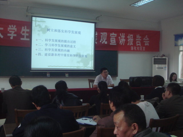 淳化街道社区教育中心举办了学习《深入学习实践科学发展观》讲师团宣讲活动。