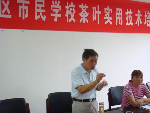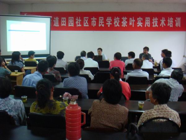 九月十四日,淳化街道社区教育中心请来南京市“讲师团”金陵技术学院的王世斌教授,在淳化街道田园社区市民学校给茶农进行技术培训,向茶农传授茶叶管理、茶叶病虫害防治、茶叶采摘与茶叶制作技术,受到田园社区广大茶农的欢迎。培训期间茶农们认真地听专家讲课、和专家进行交流并就许多茶叶种植、生产的问题向专家咨询。