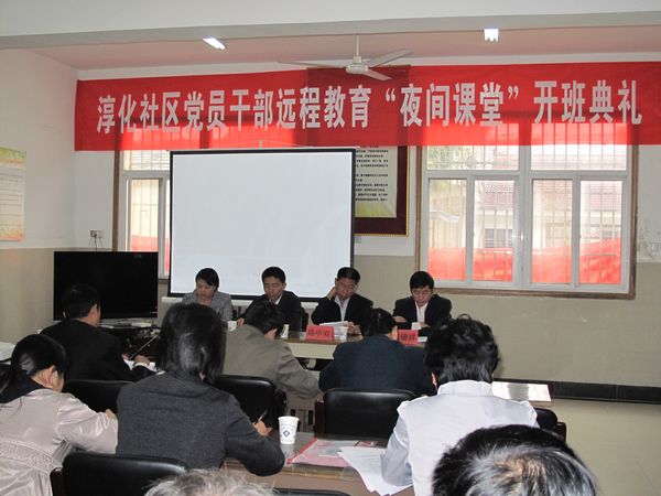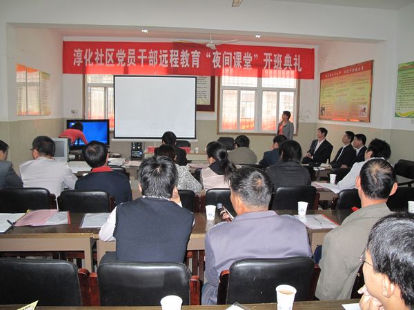 为充分发挥现代远程教育站点学用功能,全面推进社区创建省级现代远程教育示范站点工作,14日上午,淳化街道淳化社区举行了党员干部远程教育“夜间课堂”开班典礼,区委组织部电教科路中双科长、街道组织委员姜孝亮以及16个村(社区)分管党务副书记、社区党员干部和居民代表参加了典礼。