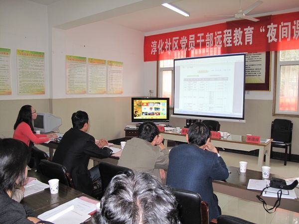 夜间课堂是淳化社区积极探索远程教育工作方法,认真摸索出的一条创新举措。夜间课堂建立在党员干部现代远程教育站点基础上,并充分利用“两网一平台”上的教学资源,结合当前中心工作,每月开展两次以上课堂教学。此外,淳化社区还将通过手机短信传送课程内容、走访发放夜间课堂宣传单以及印制《致居民一封信》等形式,广泛动员社区党员干部和农民群众参与其中,调动党员群众的学习积极性,激发社区远程教育工作活力。