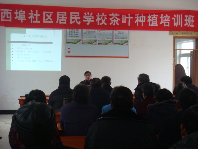 3月19日上午,由淳化街道社区教育中心牵头、西埠社区主办、街道农服中心、科协协办的农村实用技术培训在西埠社区居民学校举行。培训会上,区教育局职社科邀请了南京市教育局“农科教讲师团”、金陵科技学院王世斌教授就茶叶种植、管理和加工技术进行了精彩的讲座,参加培训的茶农有60多人,讲座后,王教授针对部分茶农提出的问题进行了一一讲解。这次茶叶种植管理技术的教育培训,为西埠社区的茶农如何科学种植、管理、加工和采摘送来了及时雨,为茶农今年茶叶的增产、增收提供了科学知识和技能技巧,使西埠社区的茶农们受益匪浅。