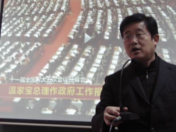 淳化街道社区教育中心吕建宁老师对温总理《政府工作报告》中披露的中国发展十大核心数字、2012年经济社会发展的主要预期目标、及2012年的主要任务进行了解读。广大市民表示,通过学习加深了对政府工作报告的理解,对我们学习贯彻“两会”精神,牢固确立科学发展的意识,增强解放思想、改革创新、促进学校科学发展的主动性和自觉性,具有很好的理论和实践指导意义。 (葛美华)