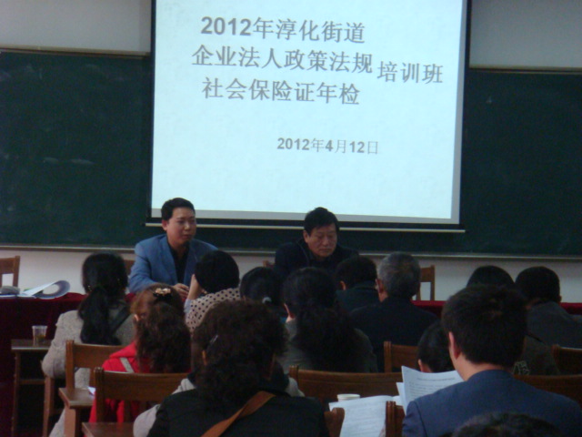 为进一步规范企业用工行为,促进和谐、稳定的劳动关系,更好地普及新的法律知识,提高街道各企业守法经营意识,淳化街道社区教育中心会同淳化街道社会保障所于2012年4月12日在淳化街道社区教育中心举办了《社会保险法》、《劳动合同法》相关法律知识培训班。来自全街道各企业法人代表、人力资源负责人及职工代表100多人参加了培训。