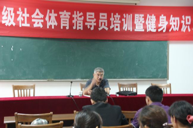 本次培训由南京市体育运动学校王宝康讲师主讲。他阐述了社会体育的基础理论知识,并采取理论和技能相结合的方式,对社区体育和农村体育的内容、社会体育指导员的职责、常见慢性病的体育疗法、常用的体育锻炼方法、体育健身器材的管理与使用以及群众体育活动的组织与编排进行了详细的讲解和示范。