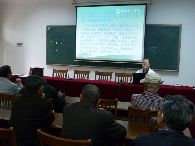 讲座结束后,同仁医院康复科的专家和医护人员还与老年学员们面对面进行了互动,为部分老年学员现场测量血压,一些老年朋友当场提出了自己身体存在的一些问题,得到了专家的详细的解答和有效的指导,老年学员纷纷表示,这样的讲座很有实际意思,不但学到了养身保健知识,还初步了解了老年心脑血管突发后第一时间的救治,这些内容非常实用。