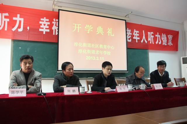 九点整,开学典礼正式开始。典礼仪式由社区教育中心陈学平副校长主持,吴国平校长首先发言,他代表街道社区教育中心的全体工作人员热烈欢迎大家重返学校,对大家“活到老,学到老”的可贵精神予以了高度赞扬,同时对新学年老年学校的工作做了表态性发言;接着街道老龄委主任刘三保对过去一年里,街道老年学校开展的一系列工作作了简要总结,对新的一年的各项工作谈了自己打算和建设性建议;最后,新上任不久的街道党工委副书记孙军作了重要讲话,孙军书记代表街道党工委和办事处感谢老同志们过去为淳化的经济和社会各项事业的发展做出的巨大贡献,希望老年学员们愉快学习、安享晚年;他表示淳化街道党工委和办事处将一如既往地大力支持街道老年学校开展的各项工作,认识上高度重视,经费上予以保证,并诚恳督促教育中心的老师们强化服务意识,专心老教工作,开创淳化街道老年教育事业的新局面。领导们的发言赢得了全体老年学员的热烈的掌声。