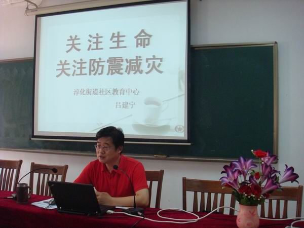 街道社区教育中心办公室吕建宁主任为全体老年学员开设一堂题为《关注生命 关注防震减灾》的科普讲座。吕主任首先为大家播放的一段前不久才发生在四川芦山地震的相关视频,让大家从直观上认识了地震带来的百姓生命、财产等方面的破坏;吕主任制作了精美的PPT课件;讲授过程中,他图文并茂,深入浅出,向老年朋友们展示了关于地震的相关知识。讲座内容包括百年来全球主要大地震、地震是什么及地震的历史及背景,重点讲解地震应急避险的相关知识,如:地震的震例、地震的宏观前兆、科学避震的方法、震后如何自救与互救、怎样识别地震谣传等。并向学员发放了地震科普知识宣传资料100余份。