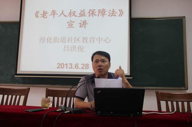 结业典礼开始前,社区教育中心吕洪俊为全体老年学员们宣讲了7月1日即将正式实施的《中华人民共和国老年人权益保障法》,吕老师较为详细地向老年学员介绍了该法的相关内容,修订的背景,强调老年人的合法权益应得到全社会的尊重和保护,讲座受到大家的热烈欢迎。