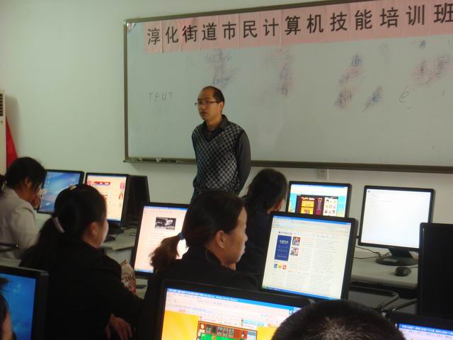 为了提高社区干部及工作人员计算机操作技能,提高他们的工作效率和行政管理水平,更好地为社会主义新农村建设服务,淳化街道社区教育中心和劳动保障所专门聘请了具有丰富教学经验的胡升沛老师对参训人员进行计算机实用技能:办公自动化、图像处理及网页制作开展培训。