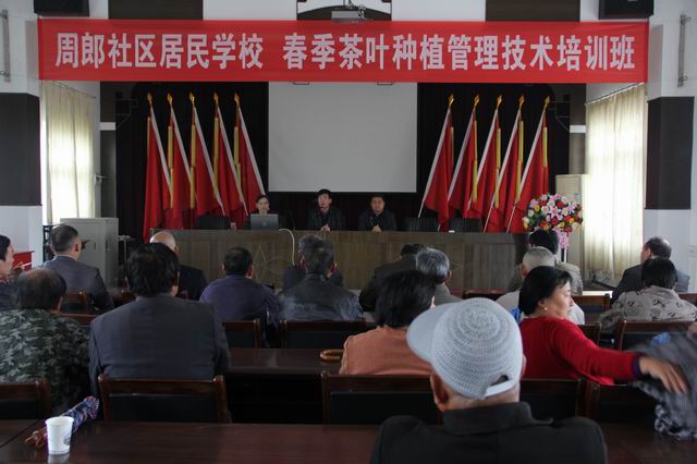 时下正值春暖花开、春茶即将上市之际,为帮助广大茶农科学管理茶园,提高茶叶产量和质量,增加茶农收入,为此,淳化街道社区教育中心、街道劳动保障所、街道农服中心和街道科协于 3月28日上午在周郎社区居民学校共同举办了茶叶春季种植管理技术培训班。周郎社区茶叶种植大户及周边茶农共计70多人参加了此次培训。