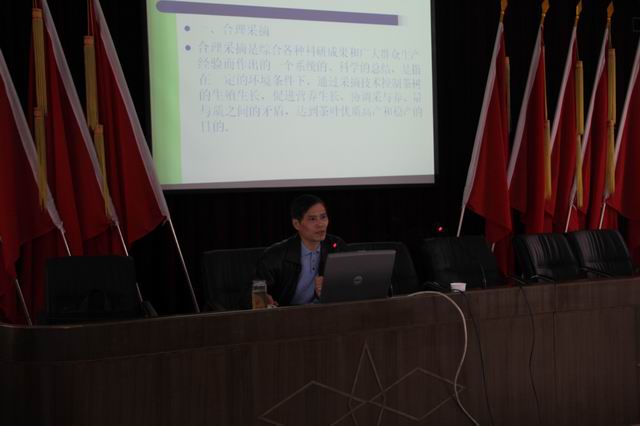 培训会上,淳化街道社区教育中心竭诚邀请了市“农科教讲师团”金陵科技学院的王世斌教授就茶园管理、茶叶採摘、茶叶管理及后期加工、茶叶施肥技术、茶叶修剪技术、新茶园的建立等相关内容作了精彩的讲座。王教授倡导茶农要创品牌、把住生产安全质量关,打造具有本地特色的绿色食品。有条件的地方要成立(茶叶)专业合作社。王教授还着重强调了茶叶的施肥技术的重要性,他提出了茶叶科学有效施肥五原则:一是要重视有机肥,有机、无机配合。二是重视基肥,基肥、追肥配合。三是重视春肥,春、夏、秋配合。四是重视氮肥,氮、磷、钾配合。五是重视根肥,根肥、叶面肥配合。参加培训的茶农兴趣盎然,认真听讲。期间,王教授与茶农进行了积极互动和交流,并回答茶农提出的问题,及时解决了茶农们生产种植中出现的实际难题。