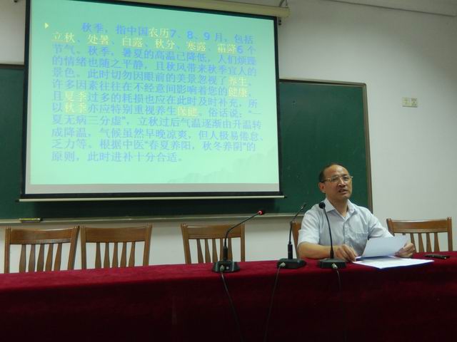 开学典礼仪式结束后,佘主任为全体老年学员开设了一堂秋季老年养身讲座,老年学员聚精会神收看了佘主任精心准备的养身视频,老年学员们的第一次活动圆满结束。