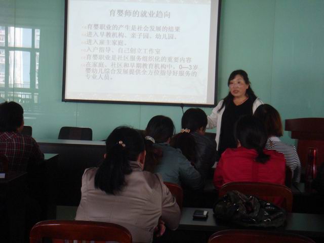 薇薇职业学校聘请了专业医师任京云向广大受训人员讲授育婴师职业道德、婴幼儿饮食与营养、、安排婴幼儿生活作息、常见疾病与意外伤害处理等培训课程,她采取理论讲解与实物操作相结合的方式,从心理、营养等各方面将婴儿生活照料、护理和教育的相关内容对学员进行了科学细致的培训,切实提高了广大学员的的理论水平和实际操作能力。通过专业系统的培训,使广大学员能够了解科学喂养婴幼儿的知识,掌握专业技能,进一步提高她们的素质和职业技能,为今后就业打下良好的基础。