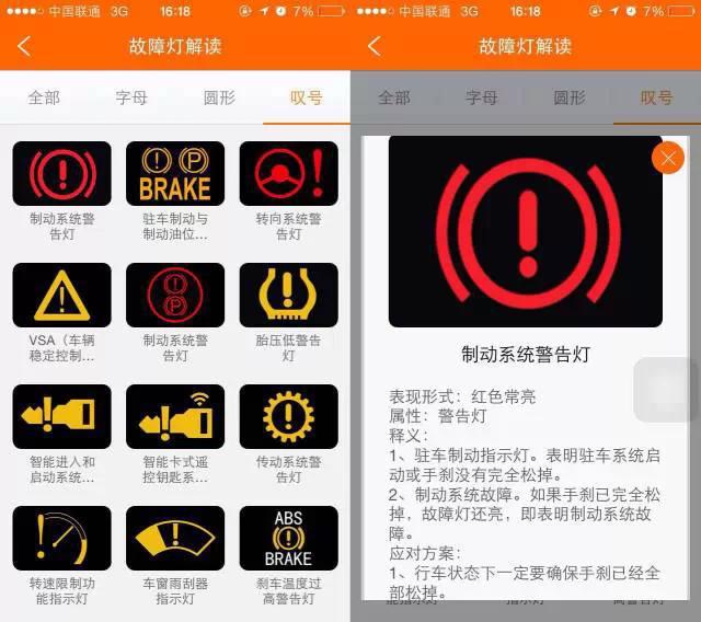 猫叔按照提示,检查了下刹车油,果然是刹车油发生了漏油,最后果断开到维修厂进行了维修。这件事情发生之后,猫叔搜集资料写下了今天这篇文章,将常见的亮灯时为危险的故障灯列举出来,让你能把故障灯大全装进口袋。仪表盘上所分布的提示灯并非都是指故障灯,它们大致可分为三类:提示灯、警告灯、故障灯。猫叔今天要介绍的,就是威胁到行车安全的故障灯,记住,这些灯亮了一定要停车!