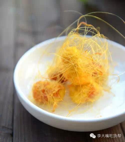 3、拉丝越细越好,尽量避免糖坨大块地挂在薯球上,影响美观,糖干后稍加热,动作迅速。炸的薯球一次不要太多,因为糖反复加热,糊后会苦。