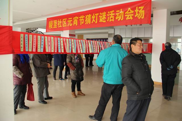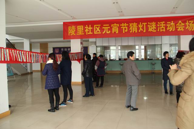 陵里社区为丰富社区居民的文化活动,增加春节期间文明祥和的热闹氛围,让社区居民感受元宵佳节的喜庆气氛,促进邻里交流。3月4日在春秀苑办公楼一楼大厅,由陵里社区组织举办“元宵猜灯谜”活动。此次灯谜活动内容丰富,各种各样的五彩灯谜吸引了社区众多居民踊跃参加,居民们三五成群,仔细分析谜题,结伴猜谜,偶尔还为不同的答案而争执,直到最终“统一思想”。最后大家排队等待兑奖,有的很有把握,有的焦急地想知道自己的答案是否正确。不管最终拿到的奖品是什么,每个人脸上都堆满了快乐的笑容。整个现场洋溢着一派和谐、喜庆的气氛,不仅使社区居民充分感受到了中国传统文化的魅力,更增进了社区的和谐气氛。