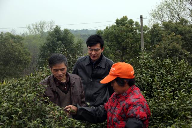 王教授围绕春茶管理与加工,对茶农深入浅出地进行了培训授课。他强调春茶采摘一定要合理采 、标准采且要适时采,注意采摘周期和采摘方法,采摘后的鲜叶要集运、摊放。在茶园管理方面,他详细地给大家介绍了耕锄技术 、间作和铺草、 施肥技术、修剪技术、新茶园建立、茶园规划等方面的知识。最后,给大家讲了碧螺春加工技术:杀青--揉捻--初烘—做形—提毫—足干。培训结束后,王教授深入到了田间地头,正逢农户们采摘茶叶,王教授对如何正确采摘也做了一些指导。