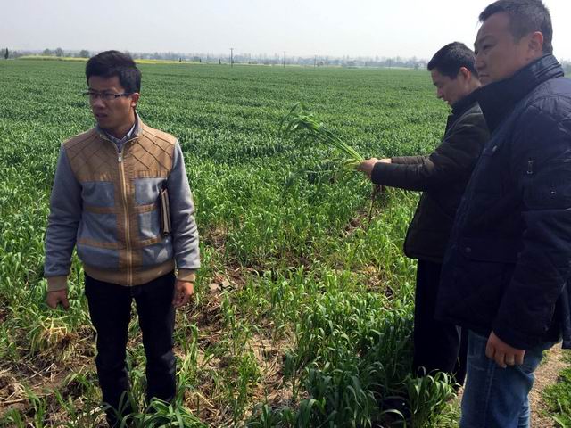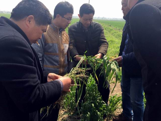当前,民主村大埝圩的小麦已普遍进入了起身—拔节期,3月中上旬,为促早发和促弱转壮,辖区小麦普施了返青肥,小麦苗情转化升级快,长势总体好于常年,但小麦拔节期是纹枯病等各种病虫为害的易发、高发期,如不及时加强防治,将会造成严重减产。