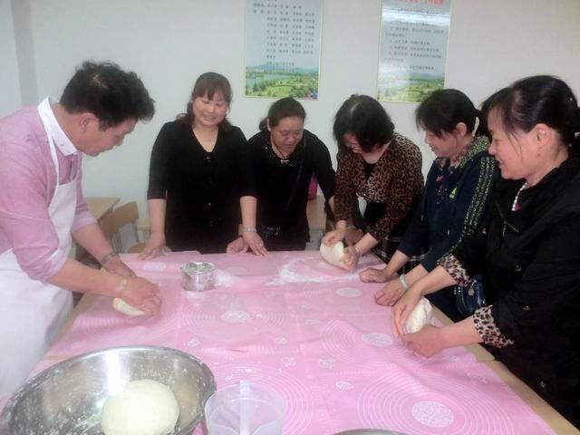 该培训班为期一个半月,由南京薇薇职业学校高级讲师于老师为任课教师。培训内容主要有:水调面团基础知识、馅子制作及成熟工艺、发酵工艺、杂粮面团制作工艺知识、食品卫生常识等制作技术。实践操作的面点有:鲜肉包、香肠卷、豆沙包、花卷、金钢锅贴、白菜饺、金鱼饺、生煎包、荞麦餜、兰花酥、玉米餜、四季饺、荷叶饼。学员们将通过现场教学,将理论与实践结合起来,通过实际动手操作,不仅可以学到中式面点制作技能,而且每次课后还品尝自己学习的成果,因此学员们学习热情极其高涨。此次培训以实践教学为主,重在培养学员的动手积极性和独立操作能力。
