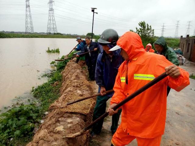 党员干部是广大居民们的“主心骨”。圩堤上,党员们身穿雨衣,手拿铁锹,不怕脏、不怕累,冒着大雨一锹一锹的用黄泥和草包加高圩堤的高度,确保圩堤不破。圩堤高度稳固后,他们也丝毫不敢松懈,仍在圩堤上认真巡查,观察水位。党员们的行动感动了居民,居民们也自发的参与其中,他们日夜忙在排涝现场,换人不换班,用实际行动诠释着全心全意为人民服务的根本宗旨。