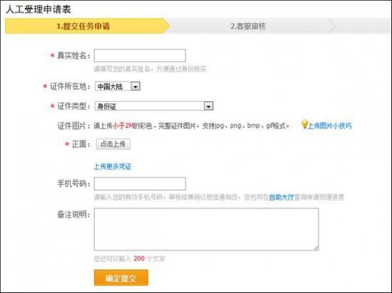 5、请提供以下证件人工处理:身份证、户口本、户籍证明、护照+资金来源凭证、临时身份证五选一。证件可以使用手机或照相机拍摄,证件需要拍摄清晰。处理时间:48小时之内。