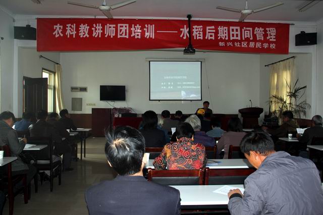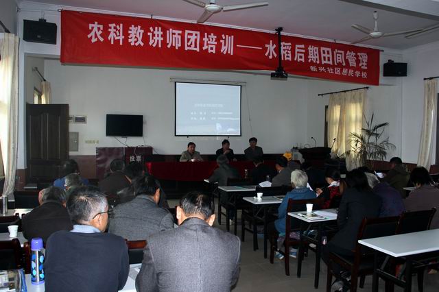 淳化街道社区教育中心邀请市农科教讲师团专家到新兴社区开展水稻种植技术培训