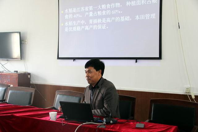 在培训活动中,郭教授利用PPT课件,就水稻种植中直播水稻的特点和栽培技术以及田间管理技术等三个方面为参训者作了精彩而详细的讲解。参训人员聚精会神,并认真做了详细的记录。培训会上,郭教授和水稻种植户进行了互动交流,认真回答了水稻种植户的提出的疑惑和问题。