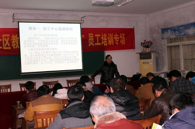 开班仪式由社区教育中心李斌主任主持。开班仪式上,社区教育中心吴国平校长做了热情洋溢的讲话;“智田机电”公司领导对参加培训的公司员工提出了明确的学习要求。开班仪式结束后,江宁中专校数控专业教师王老师对“智田机电”员工进行了“数控加工基础知识”的第一期培训,“智田机电”的三十多名员工参加了培训学习。