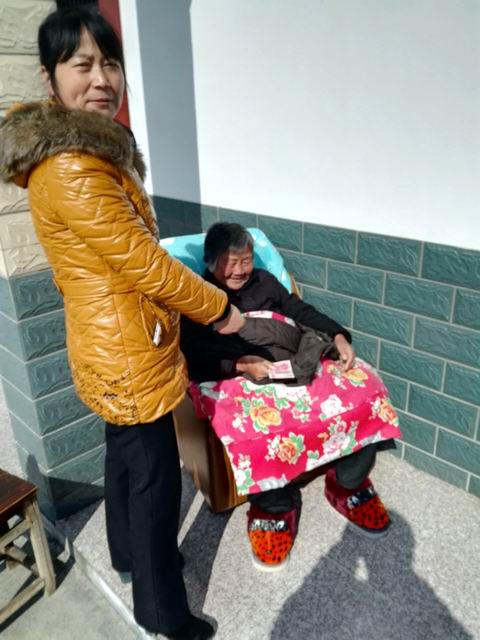 今年76岁的老党员祝腊英,突然中风并换上了老年痴呆,身体不能自理,丈夫也身体不好,常年吃药,两位老人独自居住,社区志愿者定期上门照顾他们的生活起居,帮他们买菜、打扫卫生。关工委杜兰珍亲自将800元慰问金送到他家,并帮助煮好元宵,亲自送到老人手上,与他们分享元宵佳节的喜悦。