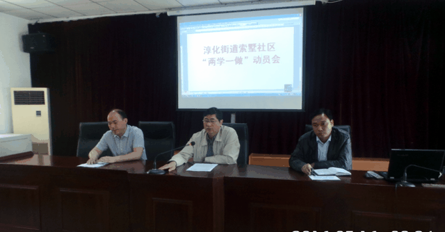 5月18日上午,淳化街道索墅社区党支部在社区党员活动中心召开了“两学一做”动员,社区全体党员同志参加了学习动员会。动员会上,首先由社区张德祥书记传达了中央及省、市、区委关于“两学一做”相关文件精神,让全体党员干部明确了“两学一做”具体内容,并要求参会党员利用各种机会途径深入学习,在社区居民中大力宣传,确保学深做实、知行合一。然后,社区党员代表结合自己的岗位和社区实际工作谈了对“两学一做”认识,表示要在实际工作中对照“两学一做”的要求严格自己的言行,充分发挥一个党员同志应该做到的表率作用。