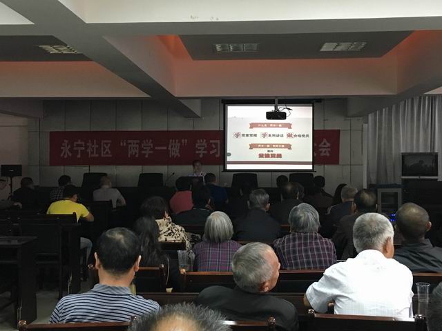 5月20日,永宁社区组织全体党员召开“两学一做”学习教育工作动员大会,邀请江宁区委党校张洪新教授给党员授课。