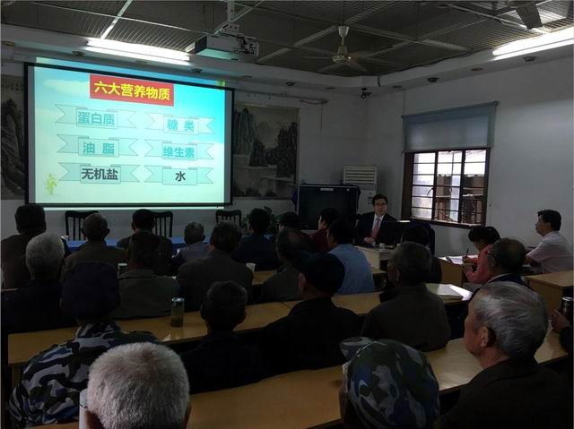 陶和林老师,向市民特别是老年朋友们传授了《食物中的的营养元素与身体健康》,他就食品中含有的蛋白质、糖类、油脂、维生素、无机盐和水六大营养物质元素以及与身体健康养生的关系娓娓道来,就注意平衡饮食、参加有氧运动和调适心理状态等方面一一讲解。参加听课的有40多人,陶老师的健康养生保健课既直观又形象、既有理论引领又有实际案例启发、既生动又具体,通过举办市民健康讲座,解溪社区的广大市民特别是老年朋友们的科学营养和健康养生的理念得到了进一步的增强。