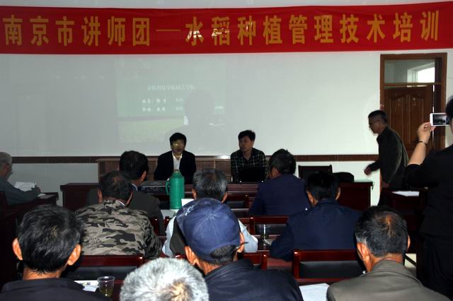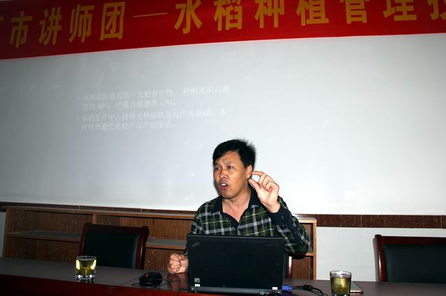 会上,郭教授从选种育秧开始,由影响水稻高产的原因分析谈到如何挖掘水稻增产的潜力;从主推技术和主推品种说到机插栽培技术和超级水稻栽培技术,进而阐述了实际生产中存在的问题以及病虫害的有效防治;围绕本地区水稻生产实际状况,郭教授特别指出了当地农民种植水稻的传统误区,并给出了科学合理的建议,提出了切实可行的指导方案。