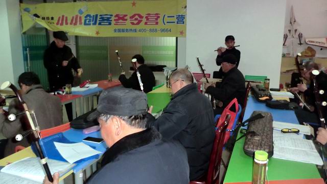 民族乐器主要采用二胡、唢呐、打击乐器等方式进行演奏,该民族乐器班有学员16人,本学期开学后,每个星期一和星期四下午举行授课培训,每次培训时间从下午一点半开始到四点半结束,培训时间达三个小时,教育中心安排教师负责对民族乐器班进行常规管理。首次开学,培训教师戴学银进行了《喜洋洋》、《草原夜色美》、《好人一生平安》的授课,学员们边学边享受,通过学习演奏,学员们既学到了民族乐器的演奏技能技巧,又享受到了人生的快乐,享受到了太平盛世给老年朋友们带来的幸福。