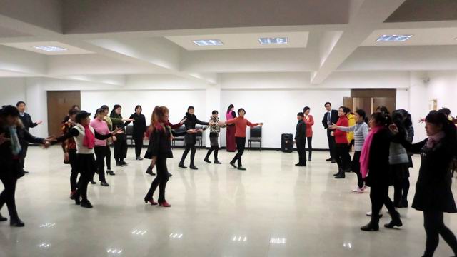 参加本期舞蹈班的人数高达76人,本学期开学后,每个星期一下午和星期四上午举行授课培训,每次培训时间达两个小时,教育中心安排教师进行日常管理,聘请舞蹈专用教师进行培训,主要教学双人舞。首次开学,培训教师胡小红进行了《伦巴》、《恰恰》、《四步》的授课,学员们边学边享受,通过学习培训,学员们既学到了双人舞的优美舞姿,又得到了身体的锻炼,既学到到了舞曲和动作的有机配合,又享受到了人生无穷的快乐。