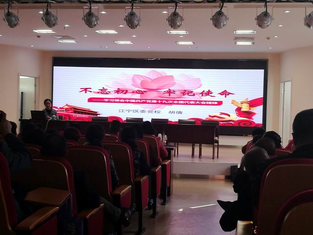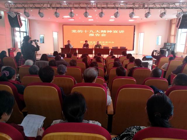 11月9日,淳化街道社区教育中心在中心报告厅举行了学习十九大精神的报告会,邀请了江宁区委党校老师、区十九大宣讲团成员胡倩老师,为淳化部分市民开设了一堂精彩的十九大精神解析讲座。胡老师精心制作的PPT,内容丰富、详实,她首先介绍了十九大召开的背景与概况,接着介绍了十八大以来国家取得的各项重大成就,然后从政治、经济、文化、民生、生态等方面,向与会的广大听众介绍了十九大报告中的新思想、新论断、新提法、新举措。参加报告会的有街道老年大学中医养生班、戏曲班、电脑班、健身气功班的学员,有街道三十个社区市民学校的教务和学员代表,有退休的老党员。报告会极大地帮助了大家及时了解和掌握十九大的精神实质,鼓舞和振奋人心;从全面建成小康社会到社会主义现代化强国的目标令在座的每一个人充满无限期待。