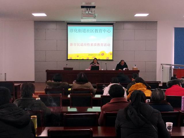 为进一步提高我街道暂住人口基本素质, 规范新市民公共文明行为,促进市民文明素质和地区文明程度不断提高,1月20日,淳化街道社区教育中心开展了新市民素质提升培训工作,组织街道各社区新市民、失地农民开展了新市民素质教育培训会。培训会上,葛美华老师围绕“新市民”素质教育、 法治文化等内容为参会人员进行了宣传和普及。