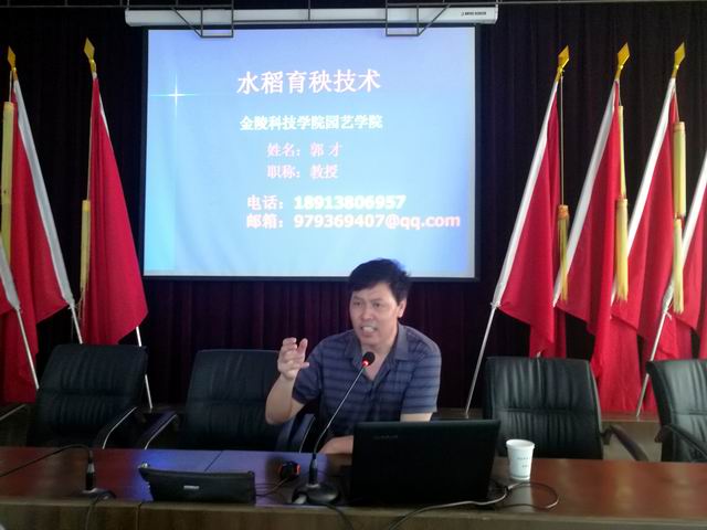 培训课上,郭教授围绕水稻选种、种子处理技术、科学育秧、水稻早期管理、常见病虫害的识别及防治,专业化统防统治与绿色防控、合理使用农药、机械化插秧、水稻高产创建示范等知识为参训农民作了详细讲解,还针对农户在种植过程中遇到的问题提出了有效的解决方法。