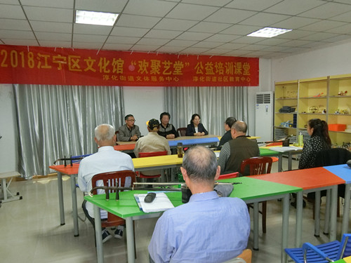 为了解决这个问题,淳化街道社区教育中心主动会同街道文体服务中心,经过协商和联系,决定从2018年10月份起邀请江宁区文化馆的艺术专家送教到基层,每周四下午安排一次授课。