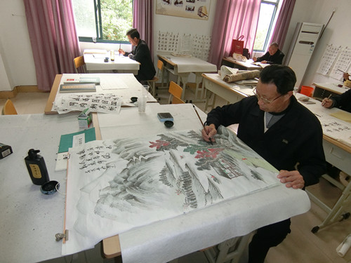 为了用书画歌颂改革开放,为了用书画纪念改革开放,为了用书画表达人民对改革开放的拥戴,天景山老年学校书画班的学员们,利用“2018年淳化街道全民终身学习活动周”序幕拉开之际,23日下午,在天景山办学点书画培训教室,用书画歌颂改革开放的新时代,其中谢顺康的书法“改革开放,永无止境”,表达了对习近平总书记谆谆教导的歌颂,孙友瞬的一幅清新靓丽的“山水画”——赤山吴韵,表达了新时代新型农民对“美丽乡村”建设的向往。